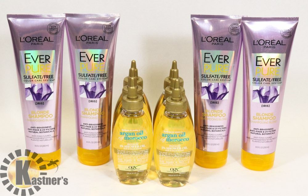 BAG OF ASSORTED OGX & LOREAL HAIR PRODUCTS