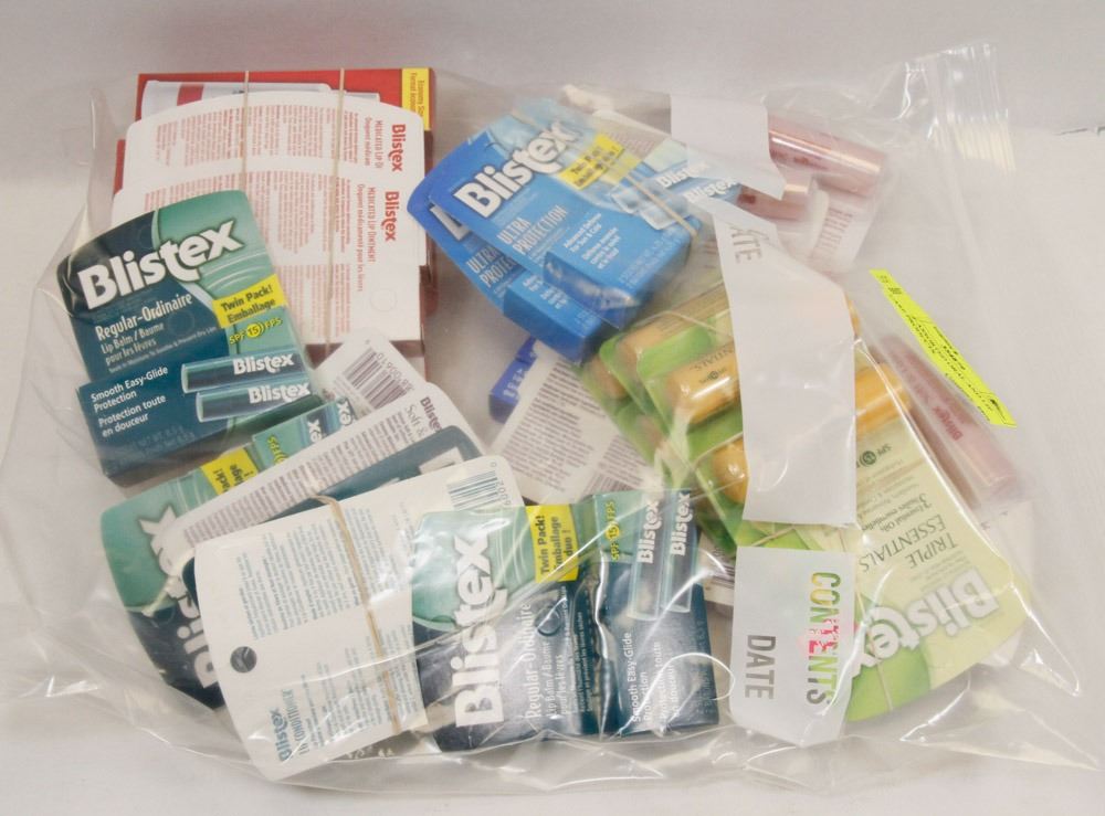 BAG OF ASSORTED ORAL AND LIP CARE PRODUCTS.