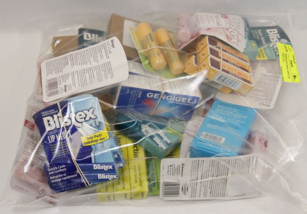 BAG OF ASSORTED ORAL AND LIP CARE PRODUCTS.