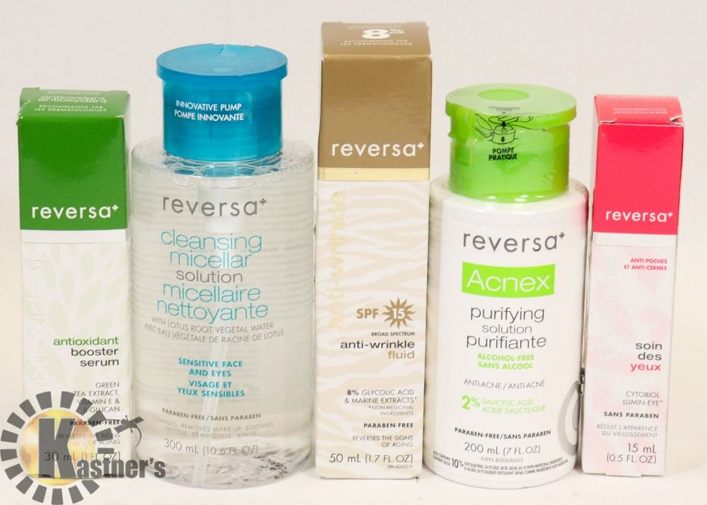 BAG OF ASSORTED REVERSA SKIN CARE PRODUCTS.