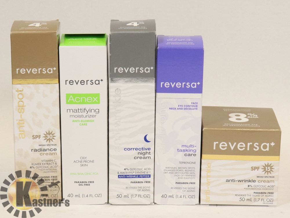 BAG OF ASSORTED REVERSA SKIN CARE PRODUCTS.