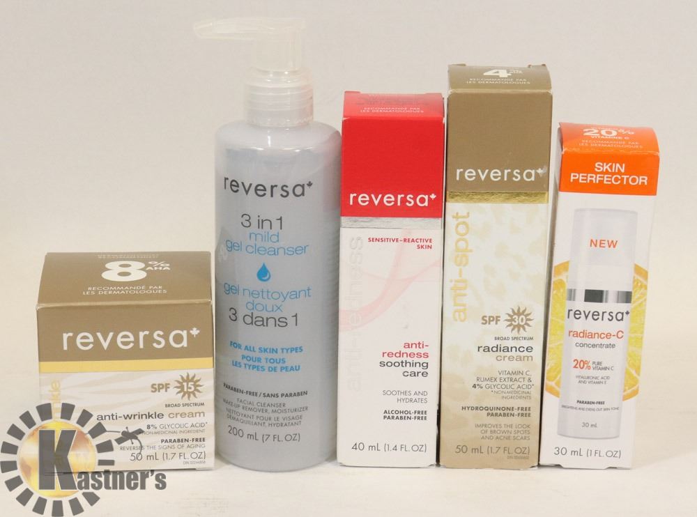 BAG OF ASSORTED REVERSA SKIN CARE PRODUCTS.