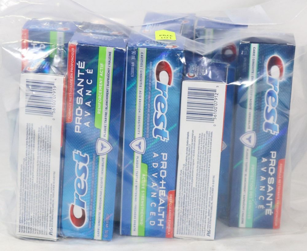 BAG OF ASSORTED SIZE CREST PRO HEALTH TOOTHPASTE
