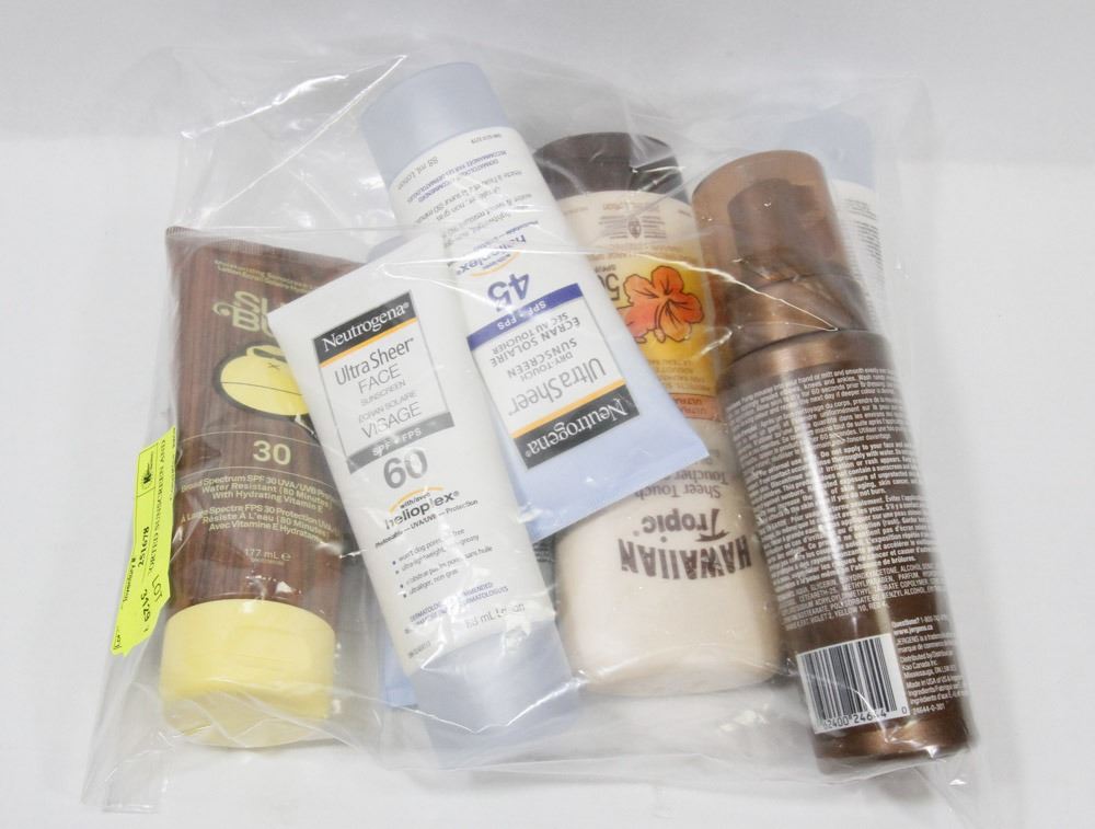 BAG OF ASSORTED SUNSCREEN AND BRONZER