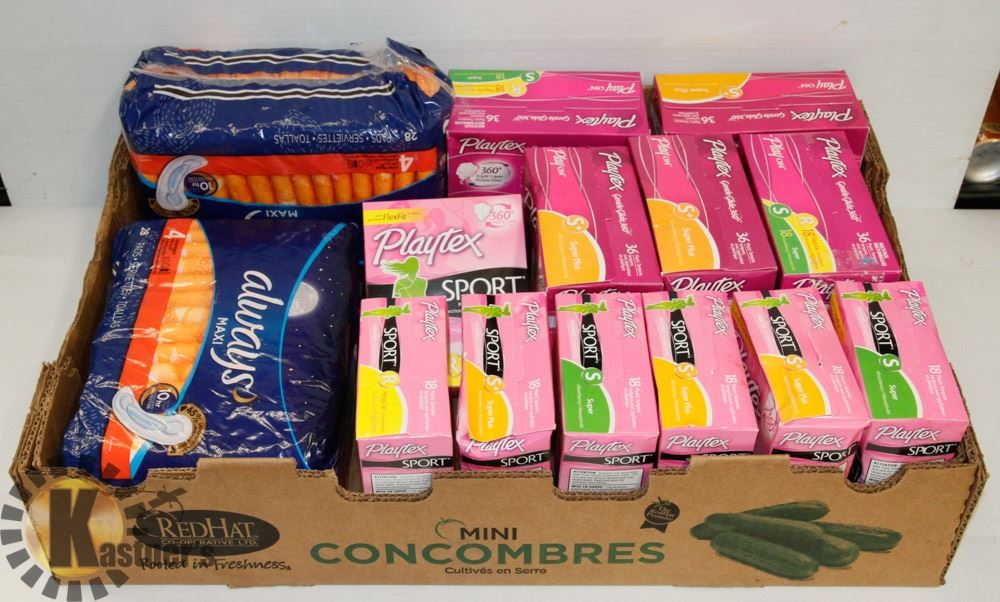 BAG OF ASSORTED TAMPONS AND PADS