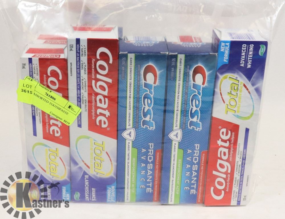 BAG OF ASSORTED TOOTHPASTE