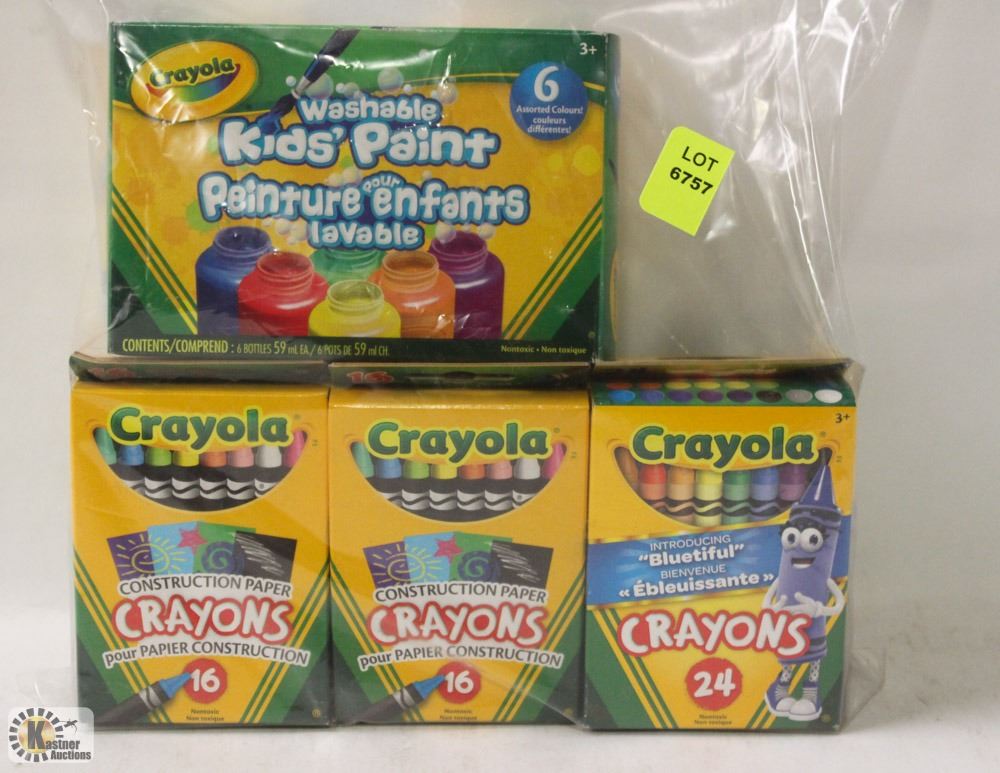 BAG OF CRAYOLA CRAYONS AND WASHABLE PAINT