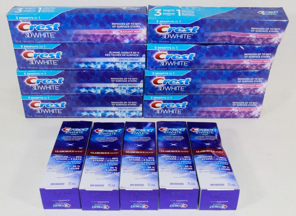 BAG OF CREST 3D WHITE TOOTHPASTE