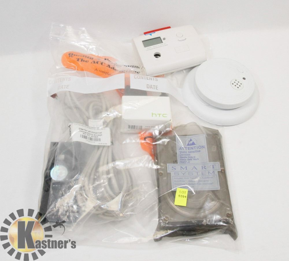 ALARM, ETHERNET CABLES, AND MORE. UNTESTED, SOLD AS IS