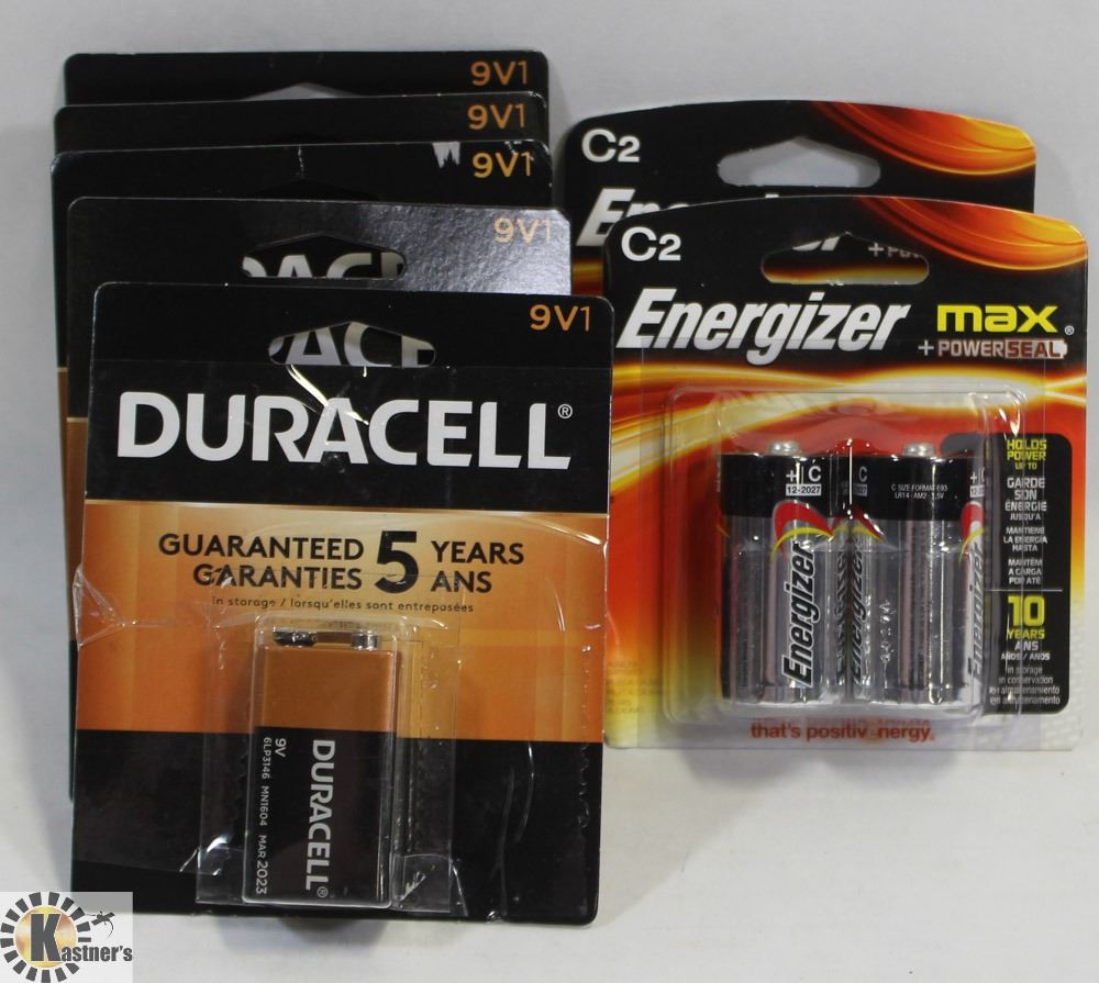 BAG OF ENERGIZER & DURACELL 9V1 & C2 BATTERIES