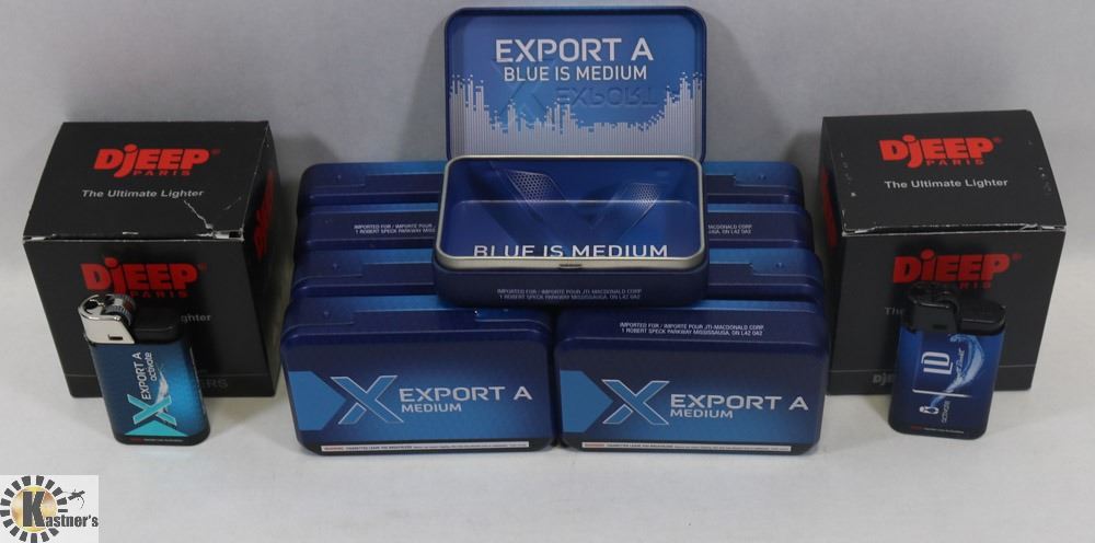 BAG OF EXPORT A METAL TINS & DJEEP BRAND LIGHTERS