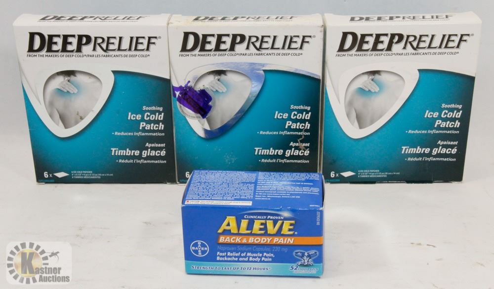 BAG OF ICE COLD PATCHES AND ALEVE BACK AND BODY