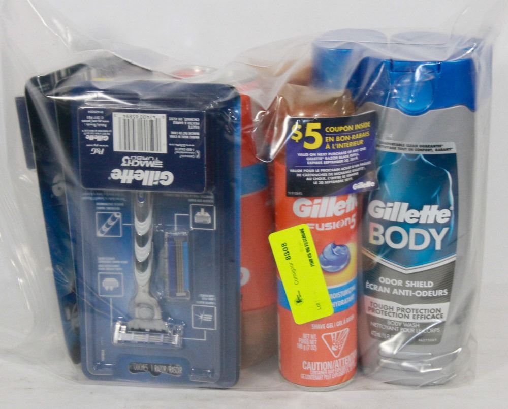 BAG OF SHAVING SUPPLIES AND BODY WASH