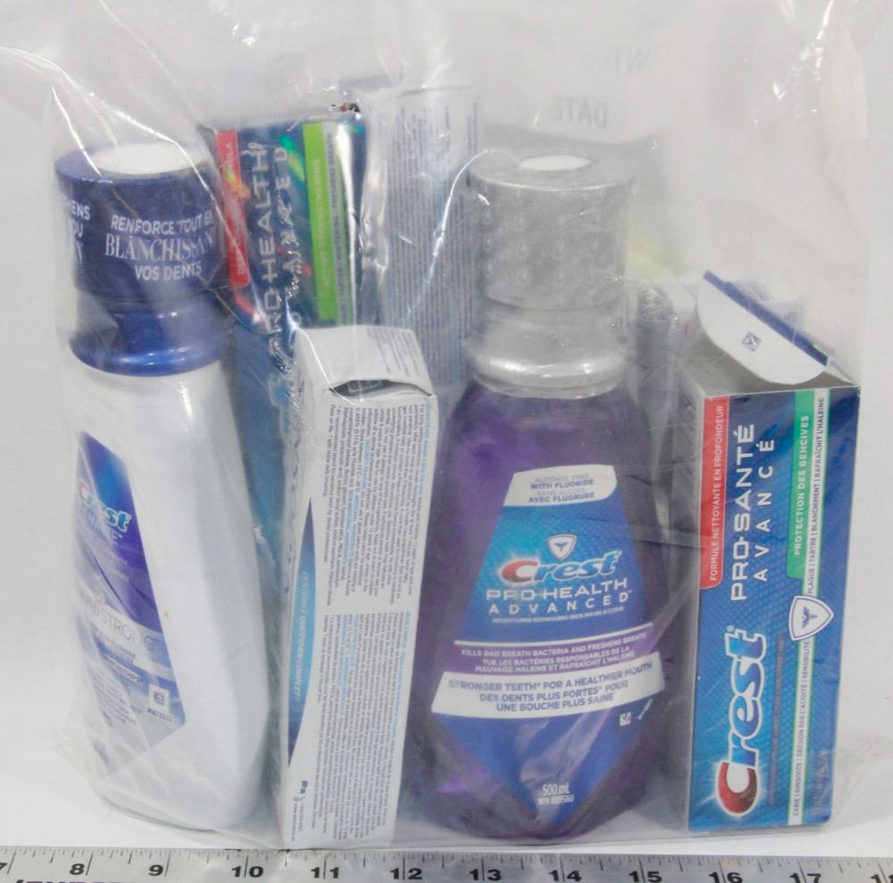 BAG OF TOOTHPASTE AND MOUTHWASH