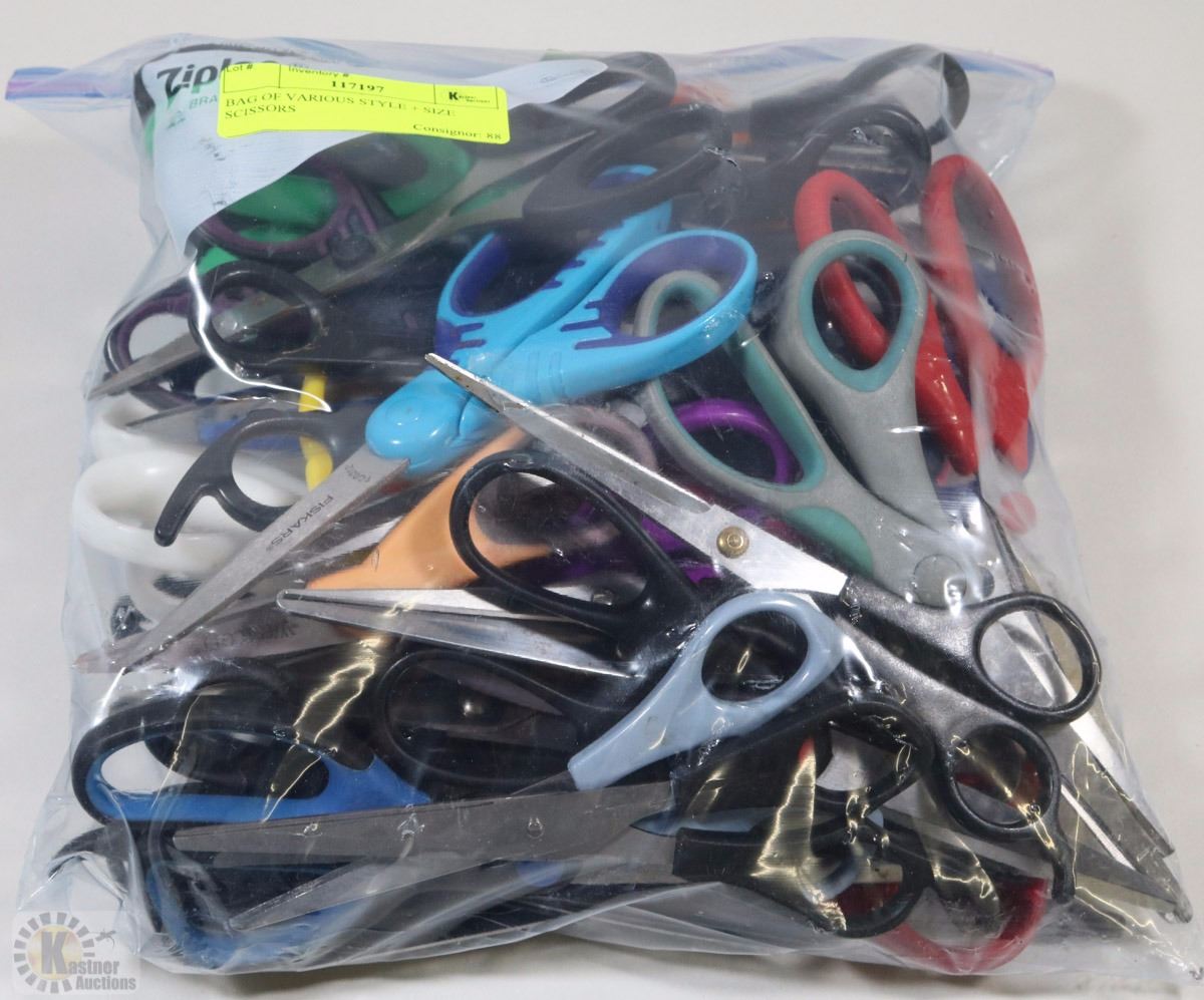 BAG OF VARIOUS STYLE+SIZE SCISSORS