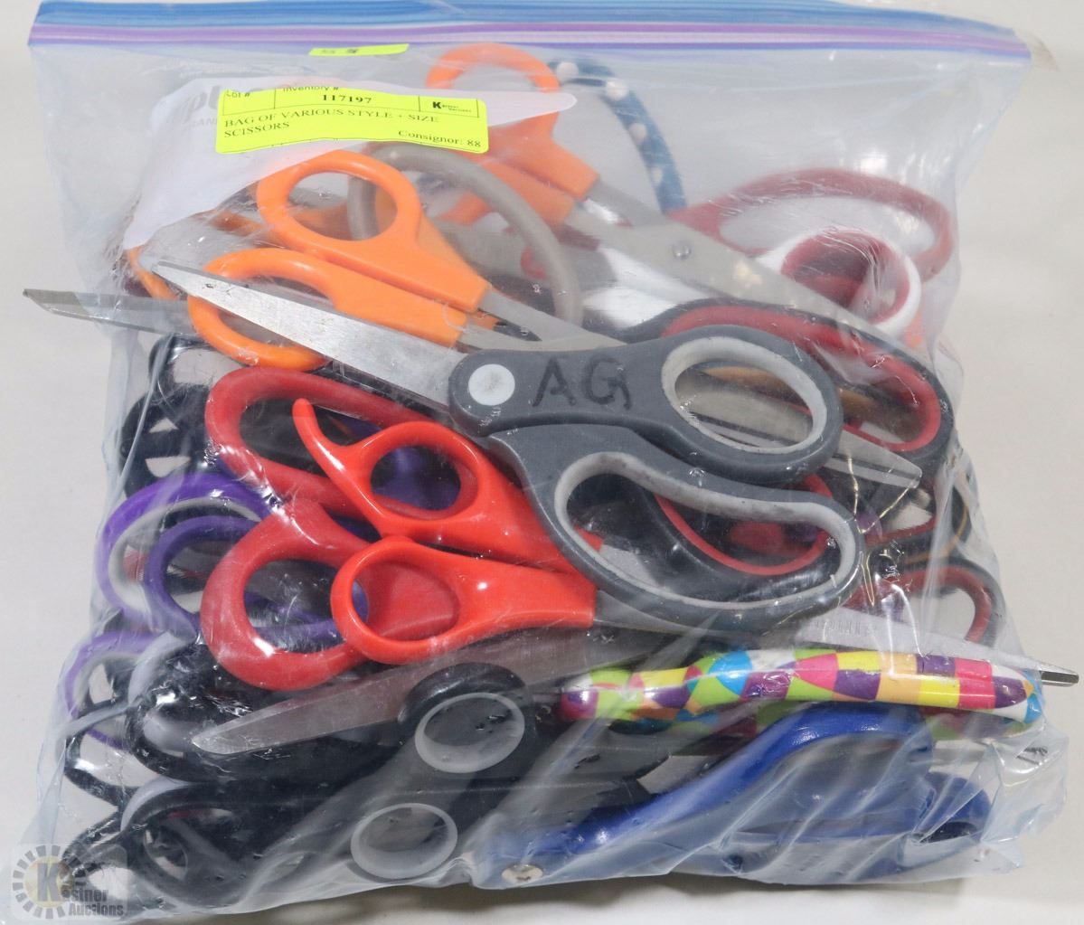 BAG OF VARIOUS STYLE+SIZE SCISSORS