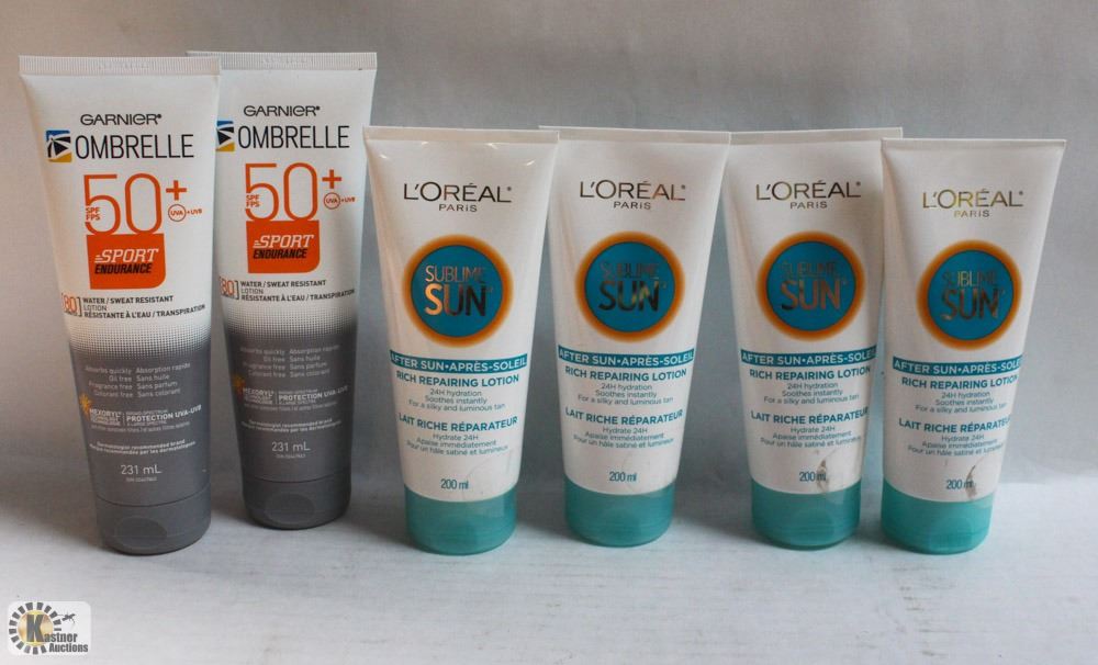 BAG W/ 2 BOTTLES OF SUNSCREEN AND 4 BOTTLES OF