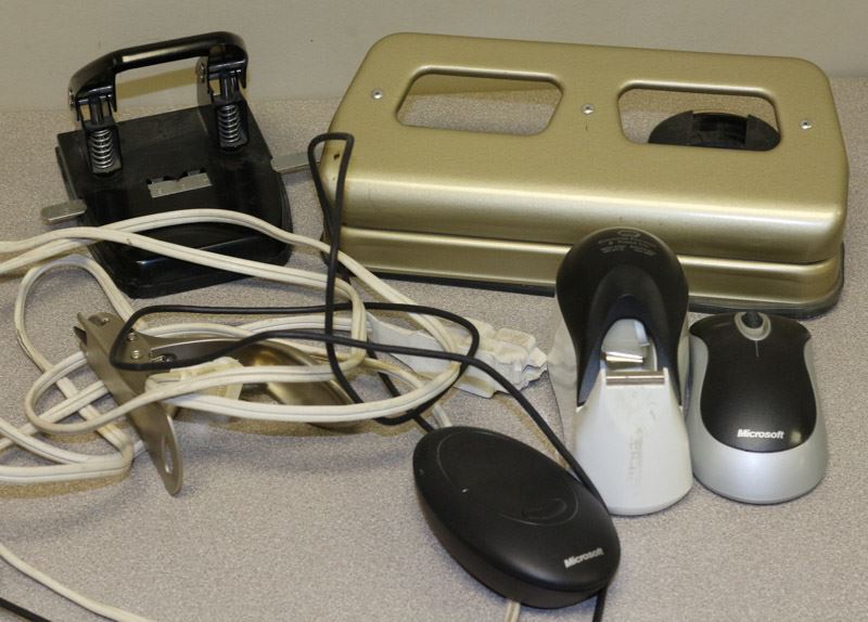 BAG W/ TWO WHOLE PUNCHES, MOUSES, ETC.