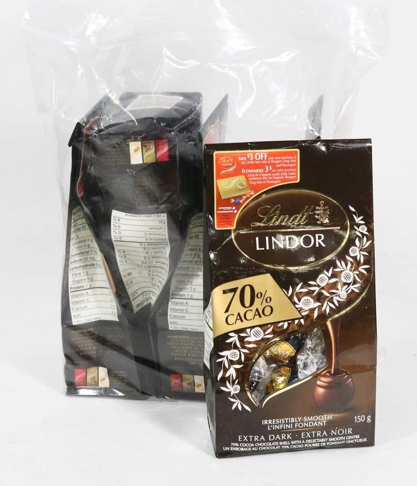 BAG WITH 5 PKS OF 70% COCOA LINDOR CHOCOLATE