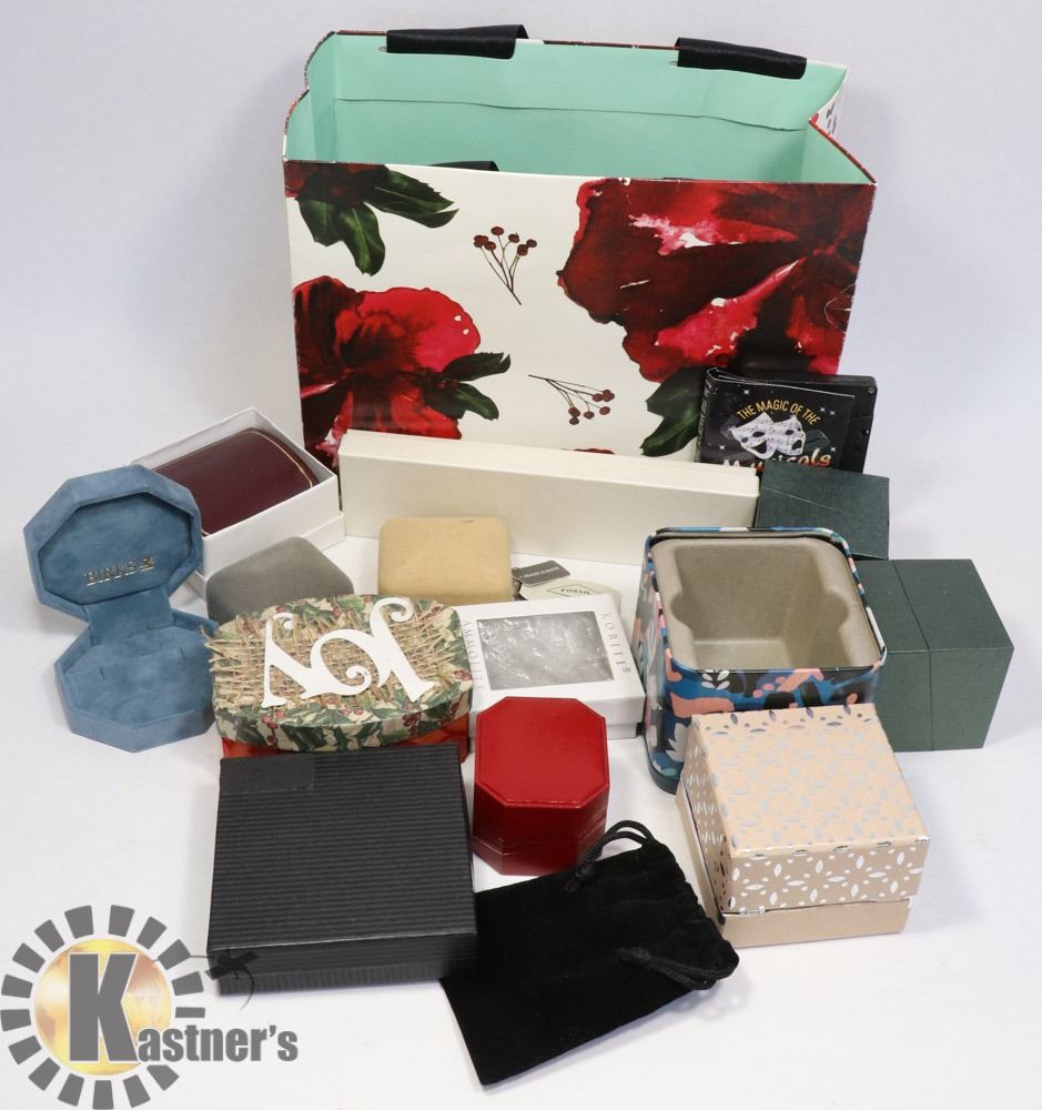 BAG WITH ASSORTED JEWELRY GIFT BOXES