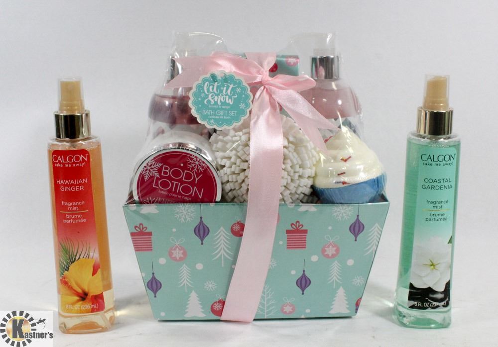 BAG WITH BATH GIFT SET AND CALGON FRAGRANCE MIST