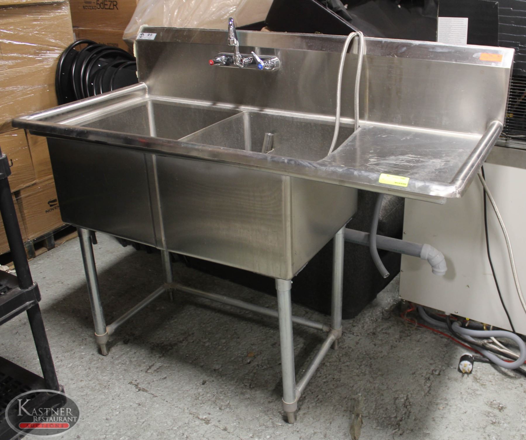 DRAIN BROAD & TAPS. TARRION BRAND. 57" X 27" X 39" WITH 11" BACKSPLASH.
