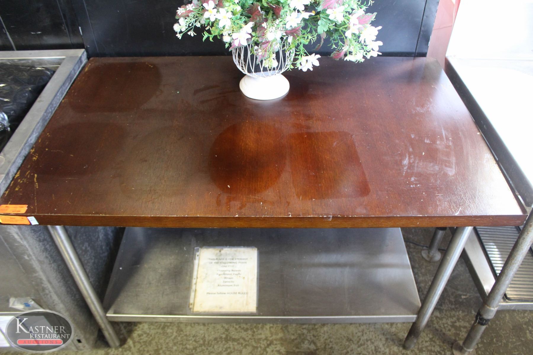 W/ UNDERSHELF STORAGE. MOUNTED WOODEN TABLETOP. 48" X 30" X 35" *ALL BAILIFF SEIZED ITEMS ARE FINAL SALE*
