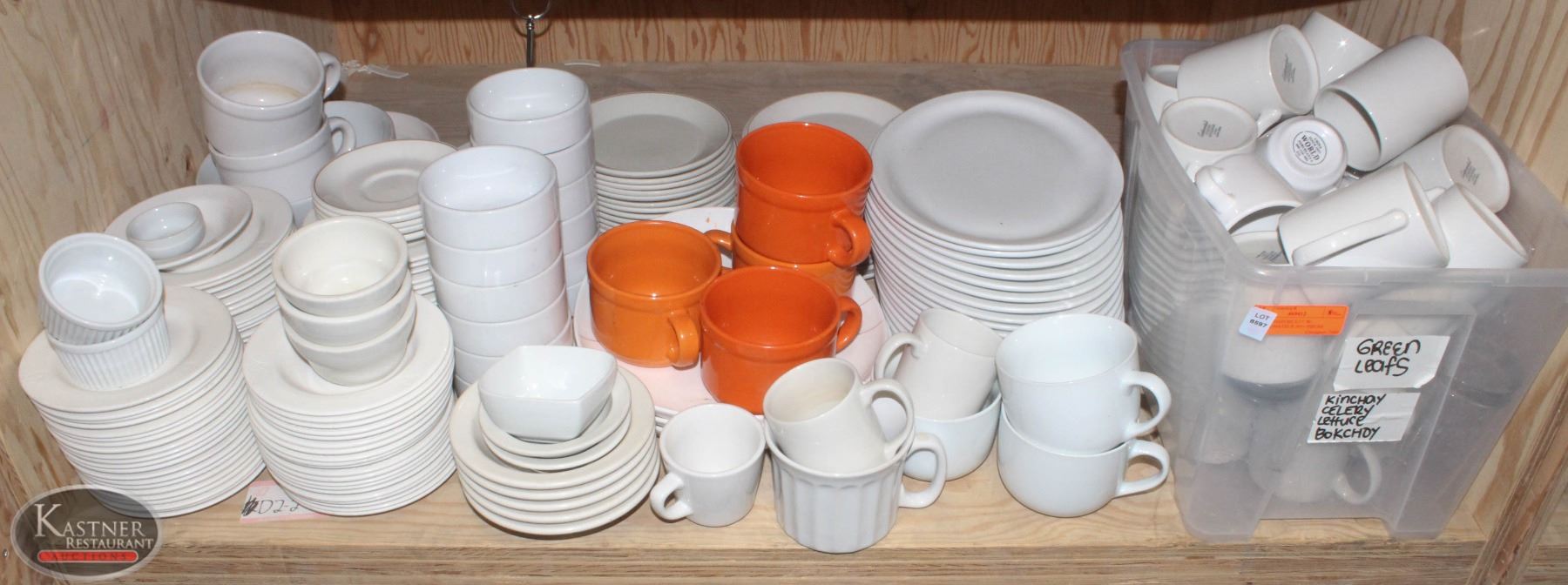 ASSORTED DISHWARE. SERVING PLATES & BOWLS, COFFEE MUGS, SOUP MUGS, VARIETY OF SERVING BOWLS. *ALL BAILIFF SEIZED ITEMS ARE FINAL SALE*