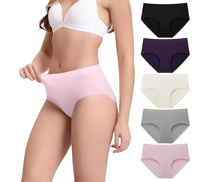 BAMBOO COOL WOMEN'S UNDERWEAR MID WAISTED BRIEF LADIES SEAMLESS PANTIES MOISTURE WICKING STRETCHY FULL COVERAGE 5 PACK | Category: Clothing/Shoes