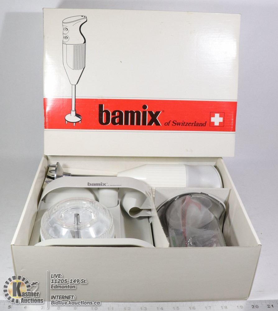 NEW IN BOX. MADE IN SWITZERLAND. MULTI-PURPOSE MACHINE. MINCES MEAT AND GRINDS NUTS, BEANS, COFFEE ETC. ALSO CHOPS, BLENDS, MIXES, WHIPS