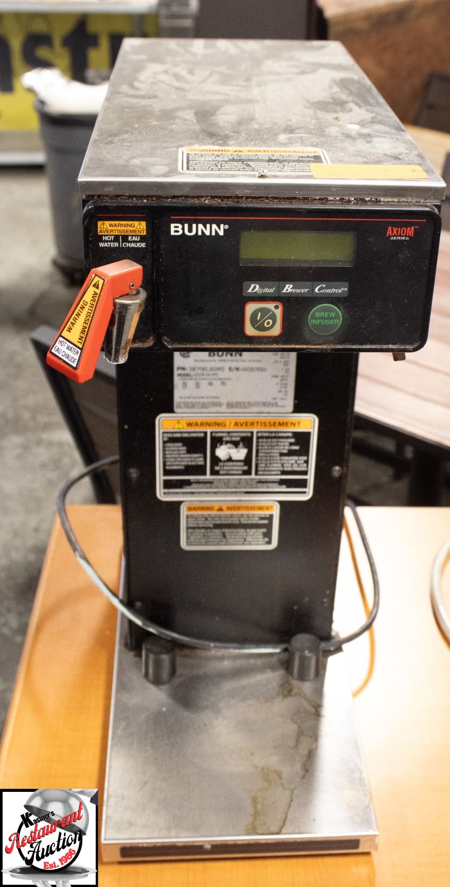 HOT WATER DISPENSER, MODEL # AXIOM-DV-APS, 120 VOLTS, 12.5 AMPS, PHASE 1, 1500 WATTS, 2 WIRES, 60 HZ. 18" X 8" X 23"* ALL BANK SEIZURE ITEMS ARE SOLD AS IS WHERE IS ABSOLUTLY NO REFUNDS OR RECONSIGNMENT *