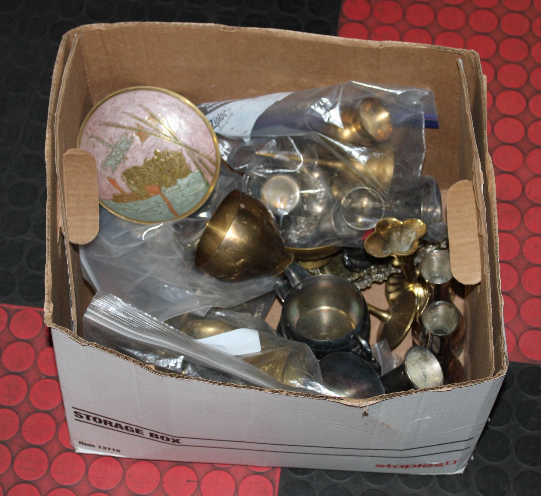 BANKERS BOX OF DECORATIVE BRASS WARE