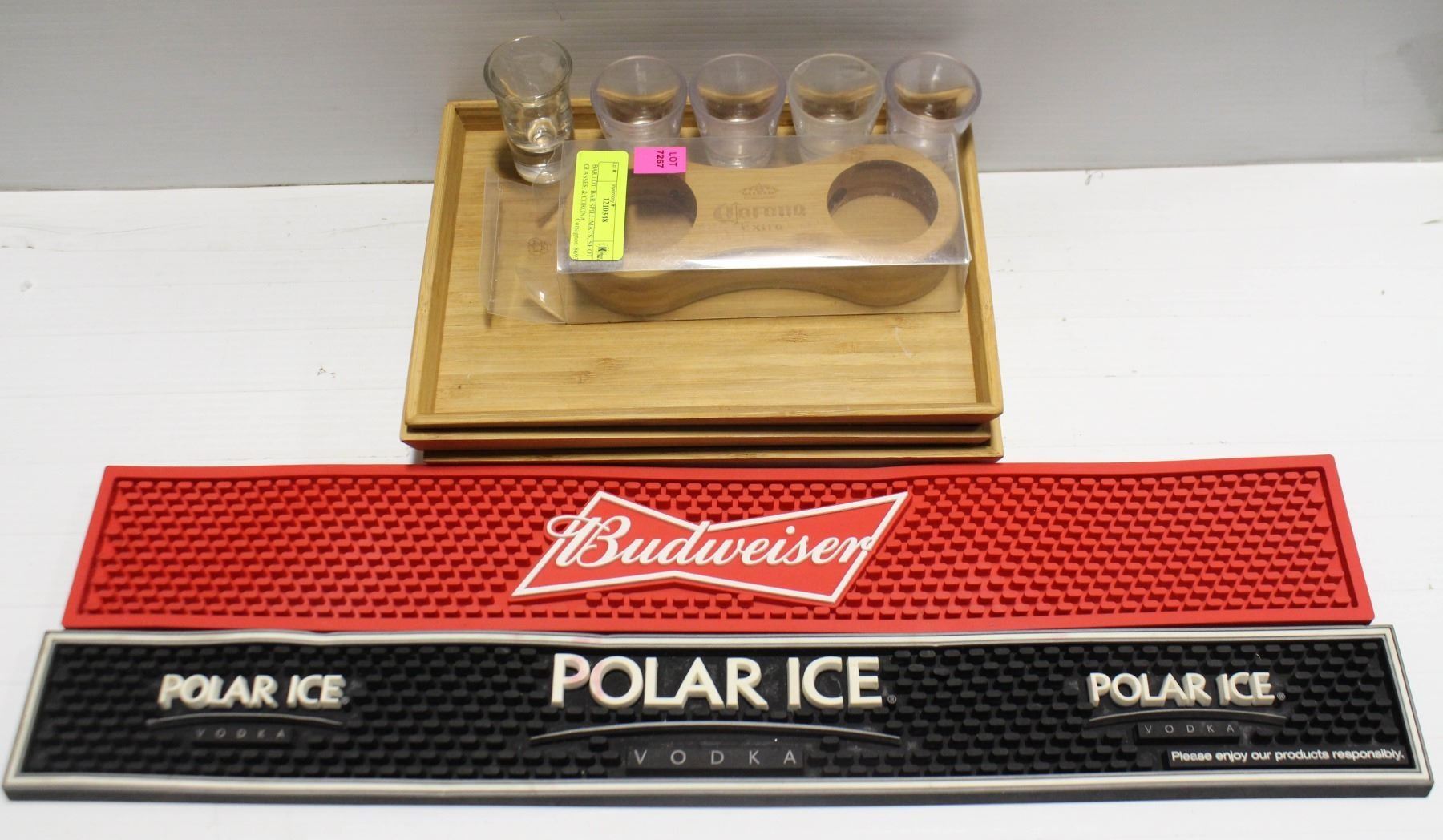 BAR LOT: BAR SPILL MATS, SHOT GLASSES, & CORONA