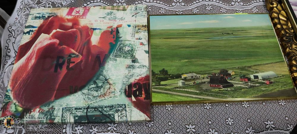 BARN SCENE PICTURE SOLD WITH FLORAL CANVAS PICTURE