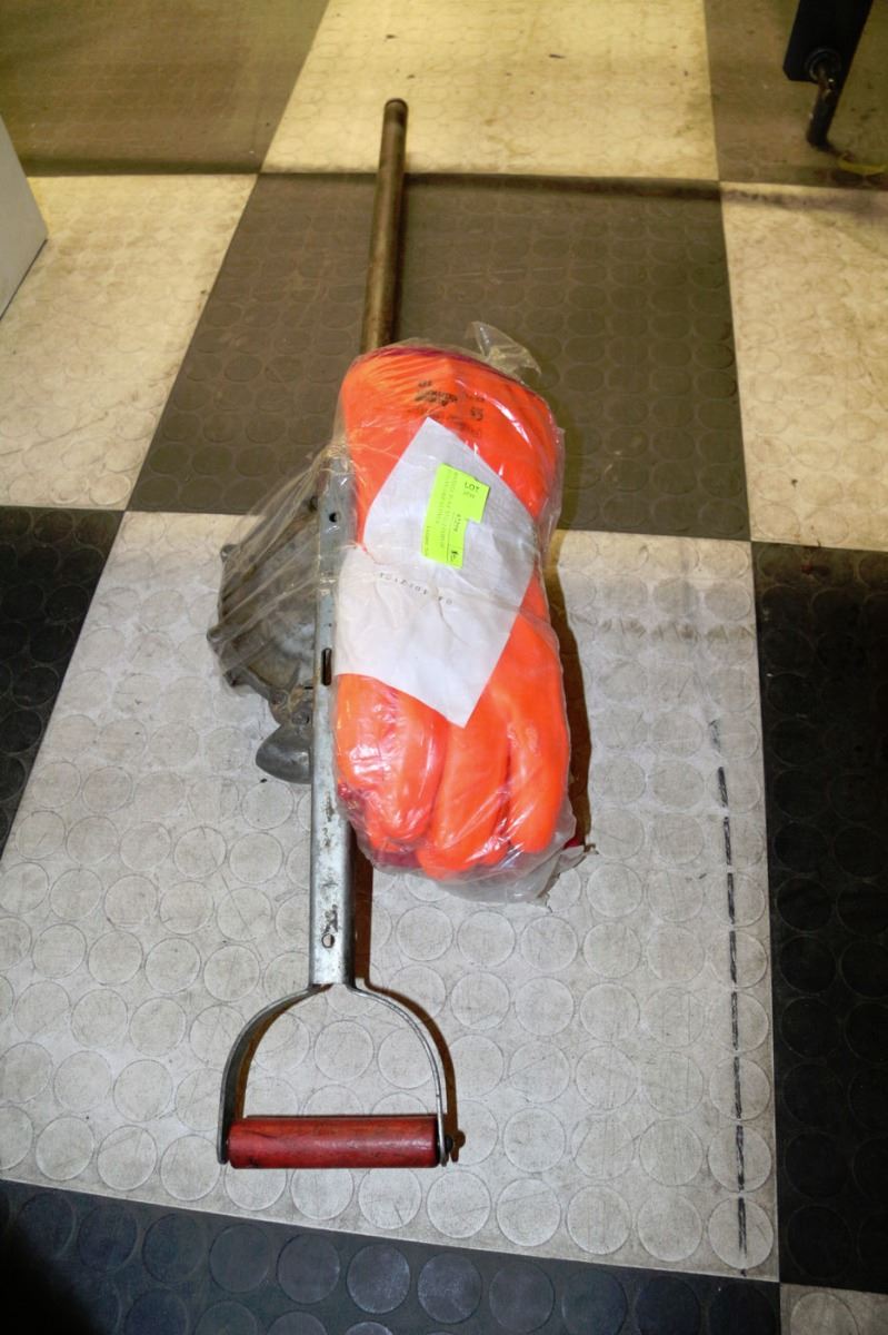 BARREL PUMP AND 2 PAIRS OF POLAR GRIP GLOVES