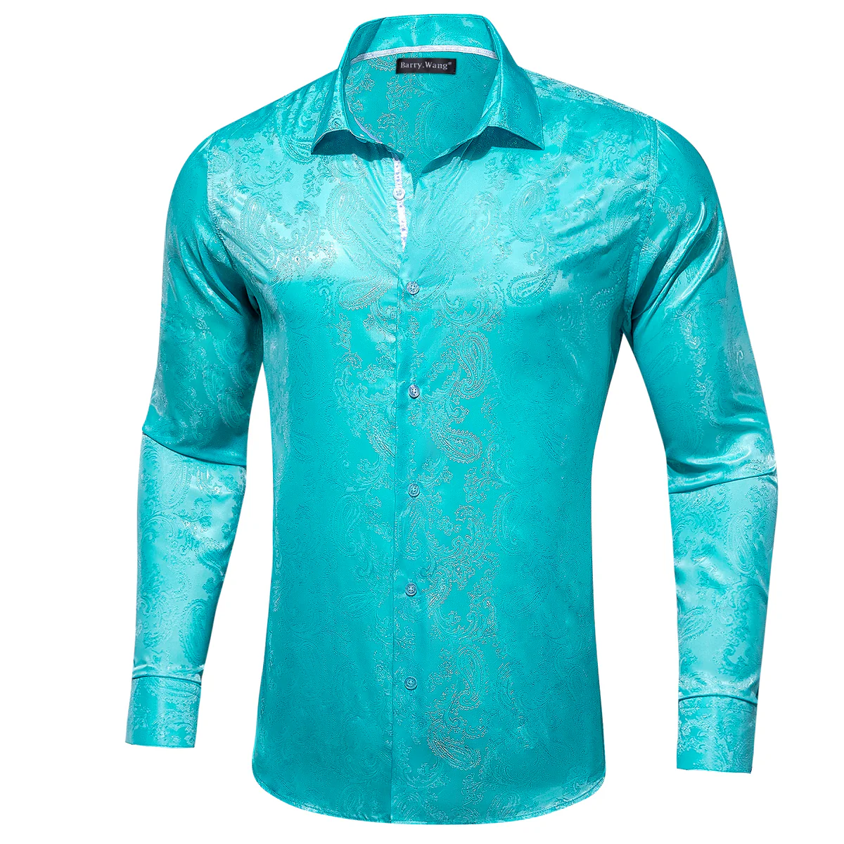 BARRY.WANG MEN'S FLORAL BUTTON UP SHIRTS SILK LONG SLEEVE DRESS SHIRT SATIN PAISLEY CASUAL PARTY WEDDING WESTERN PROM COSTUME