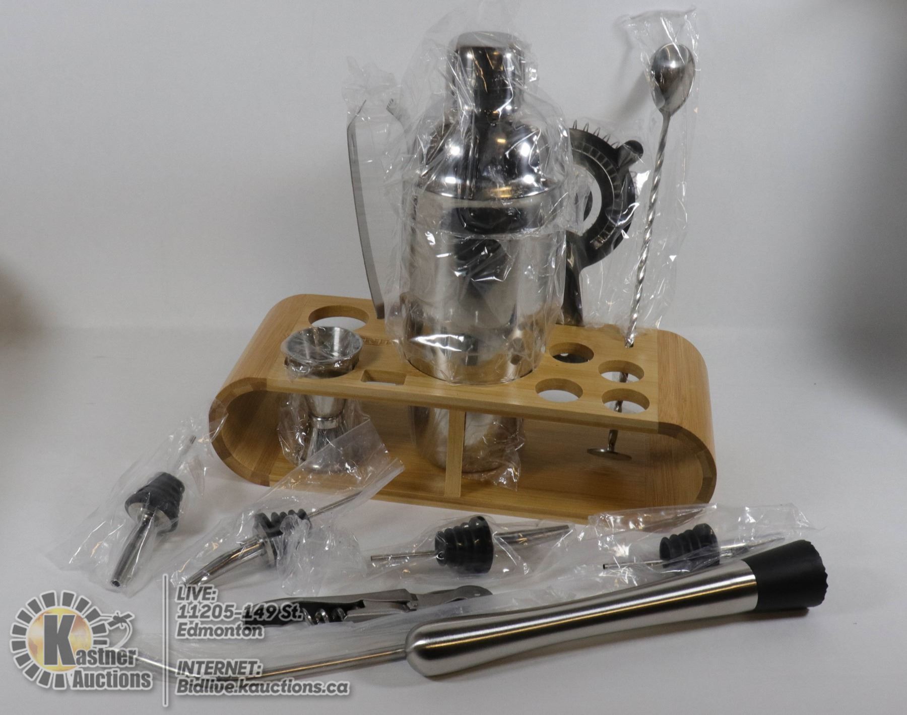 BARTENDER MIXOLOGY KIT WITH STYLISH BAMBOO STAND