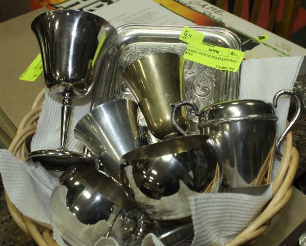 CREAM & SUGAR SET, CONDIMENT DISH AND 3 WINE GOBLETS
