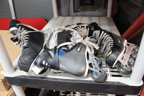 BAUER ROLLERBLADES SOLD W/ 2 PAIRS OF ICE SKATES