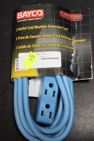 BAYCO 3 OUTLET COLD WEATHER EXTENSION CORD
