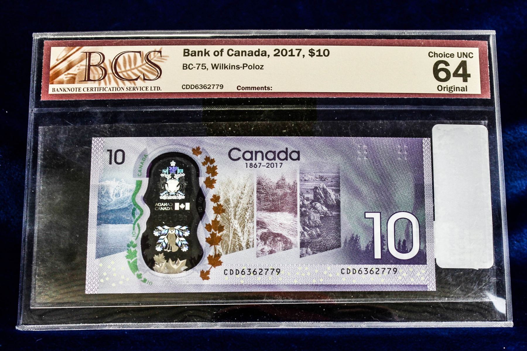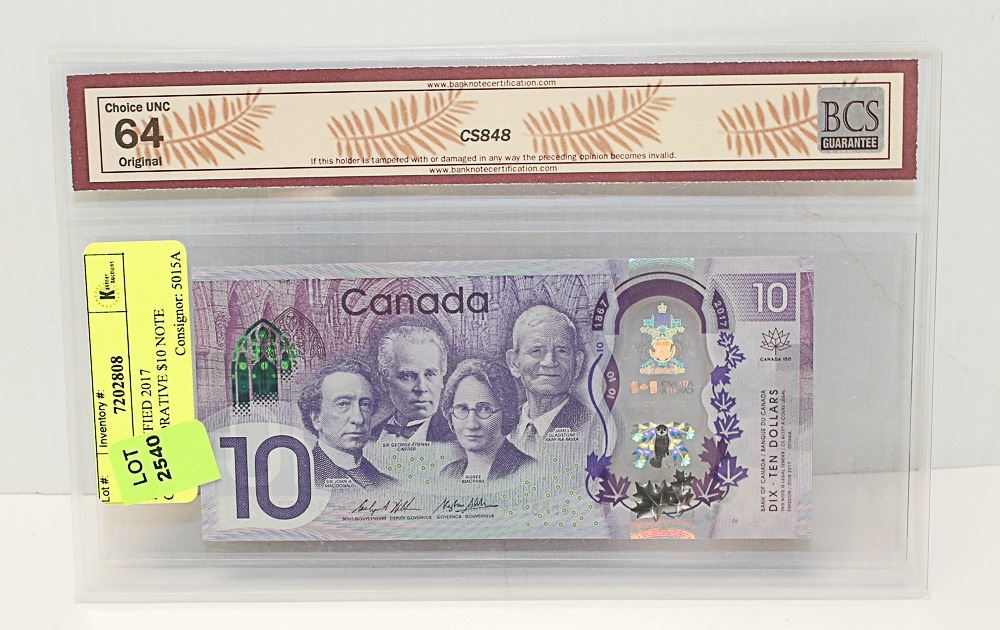 BCS CERTIFIED 2017 COMMEMORATIVE $10 NOTE