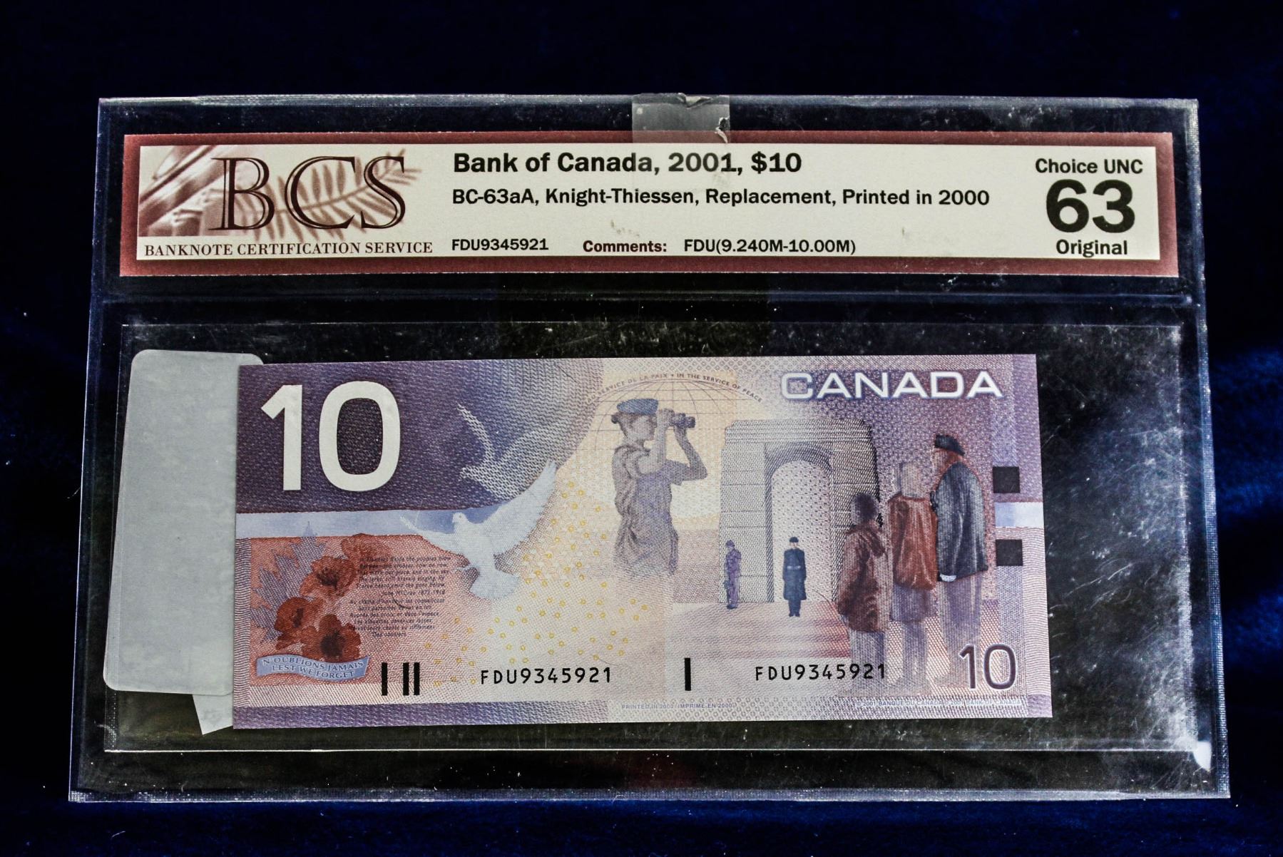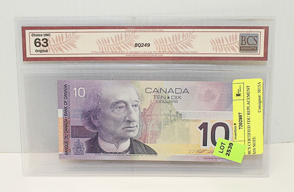 BCS CERTIFIED FDU REPLACEMENT $10 NOTE