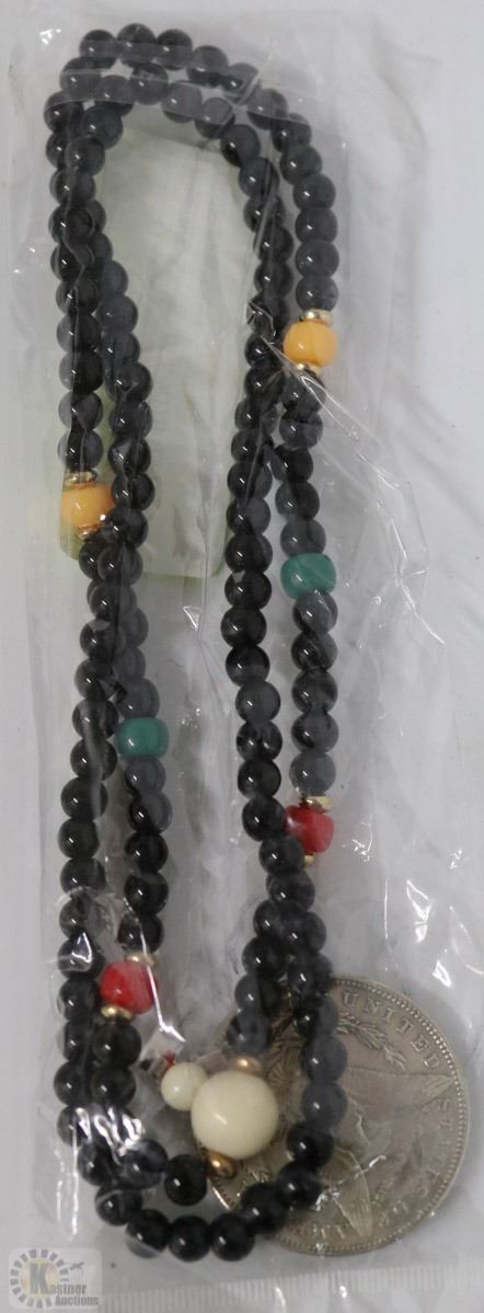 BEADED NECKLACE WITH US 1$ COIN PENDANT