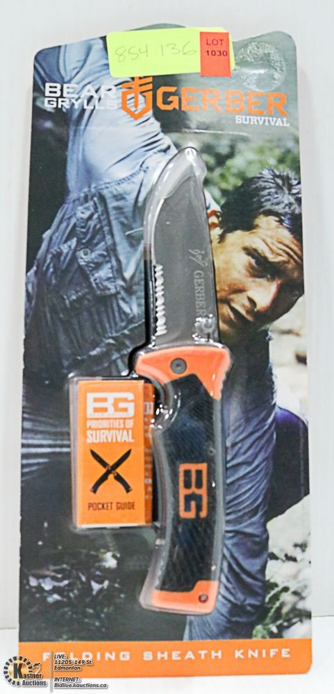 BEAR GRYLLS GERBER SURVIVAL FOLDING KNIFE W/SHEATH
