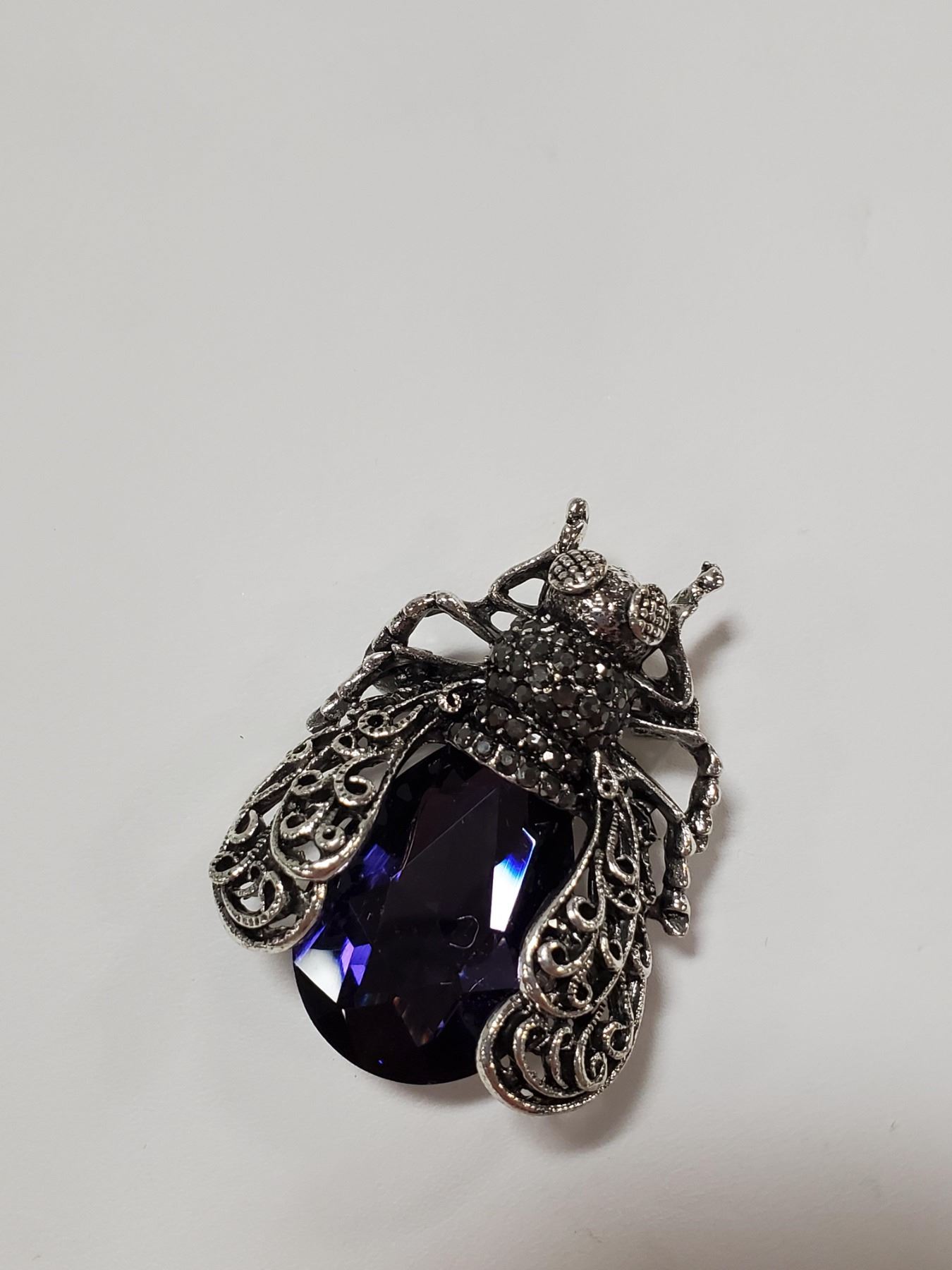 BEETLE AMETHYST COLOR RHINESTONE BROOCH