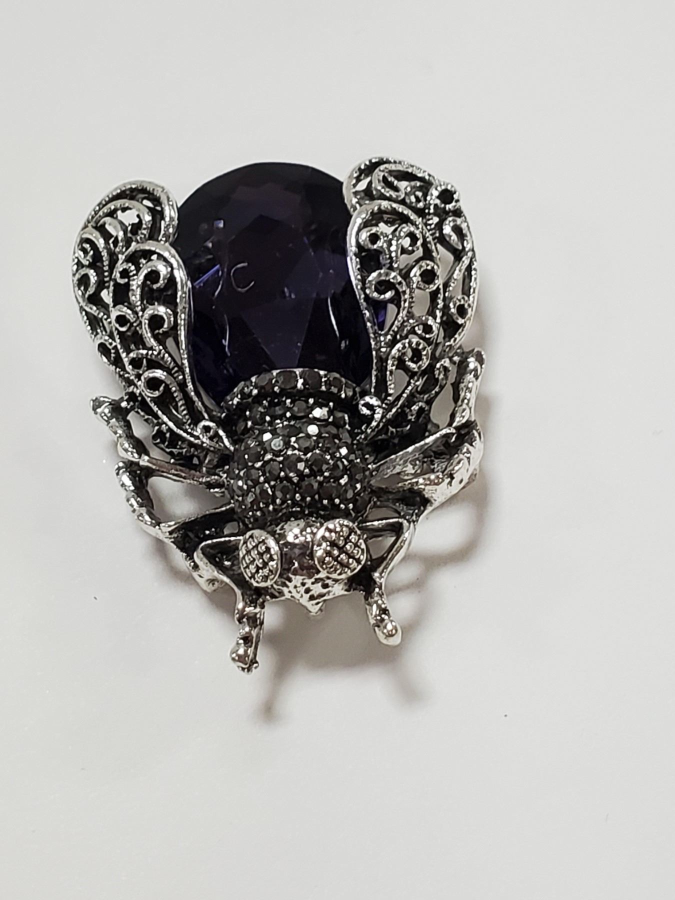 BEETLE AMEYTHST COLOR RHINESTONE BROOCH