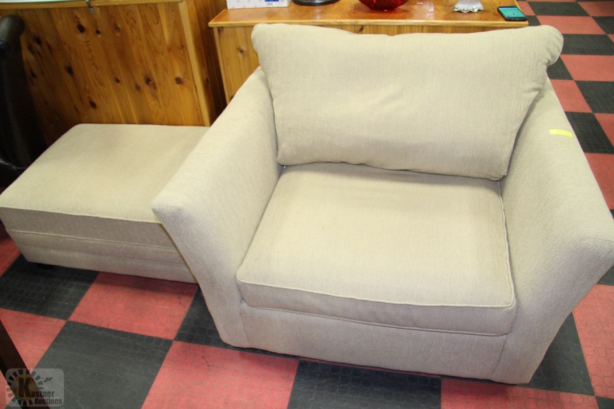 BEIGE FABRIC CHAIR WITH OTTOMAN