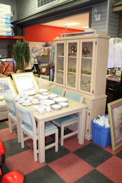 BEIGE TABLE WITH 4 CHAIRS BUFFET AND HUTCH