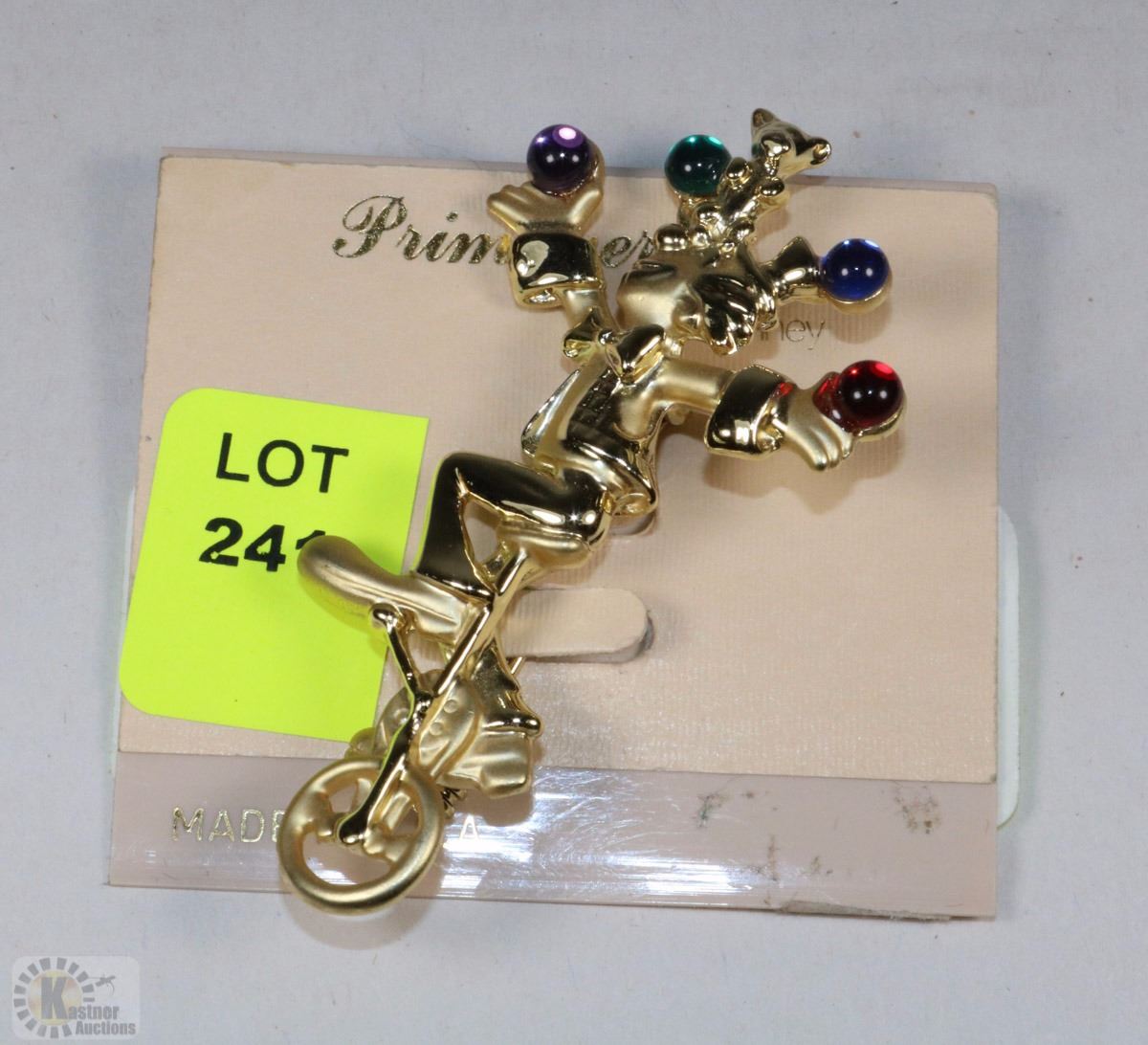 BEJEWELLED CLOWN ON UNICYCLE BROOCH