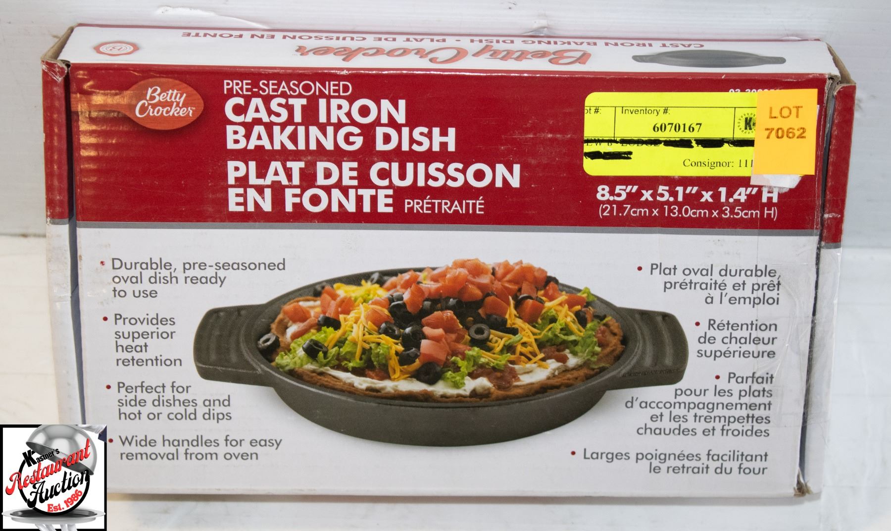 DURABLE PRE SEASONED DISH READY TO USE, PROVIDES SUPERIOR HEAT RETENTION, PERFECT FOR SIDE DISHES & HOT OR COLD DIPS, WIDE HANDLES FOR EASY REMOVAL FROM THE OVEN 8.5" X 5.1" X 1.4"***ALL EQUIPMENT WILL HAVE A 15 DAY WARRANTY, STARTING AT THE END OF THE AUCTION. SUBJECT TO TERMS AND CONDITIONS, MUST HAVE A PROOF OF A NON WORKING ITEM.***